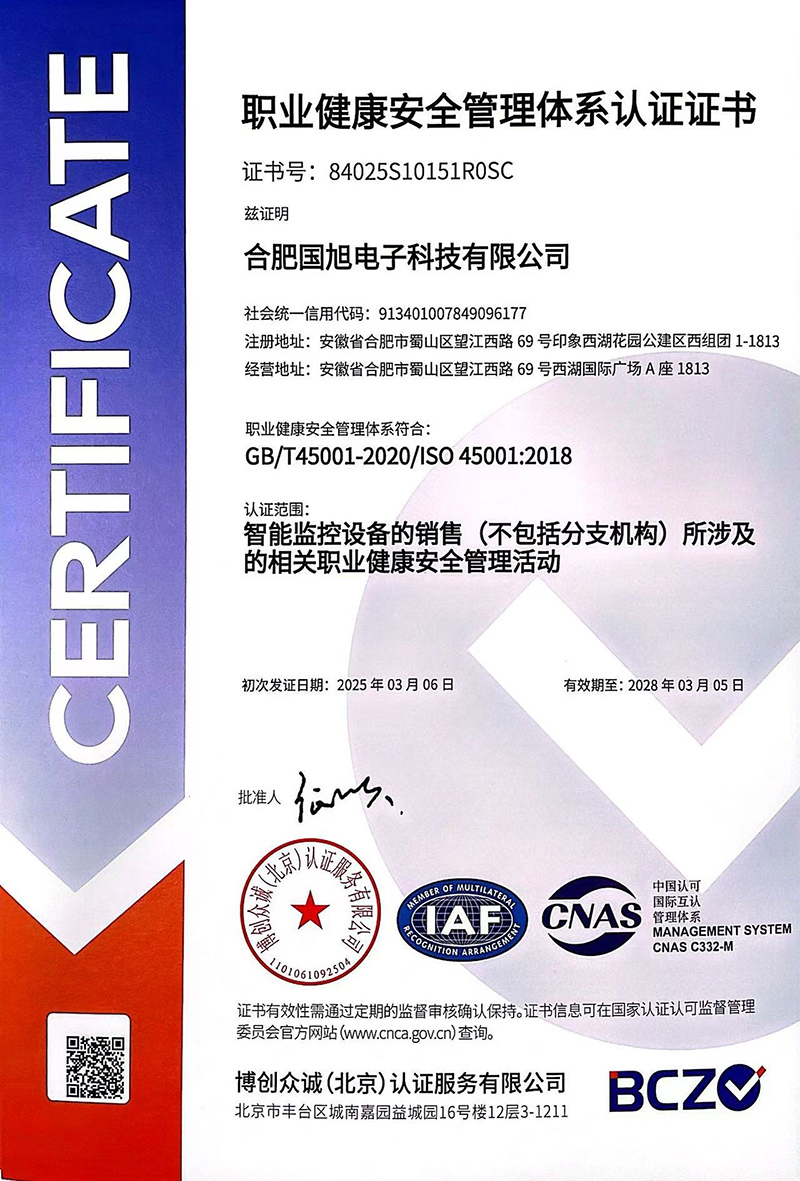合肥國旭電子科技有限公司創立于2006年,總注冊資本2008萬。公司總部地址位于安徽IT主流商圈核心,合肥市蜀山區望江西路與肥西路交口西湖國際廣場。 公司是專業從事智能防雷檢測系統、智能化工程設計與施工工程、防雷設計施工工程、數據中心機房、消防工程、網絡監控安全技術防范工程、及智能變電站安全預警系統。